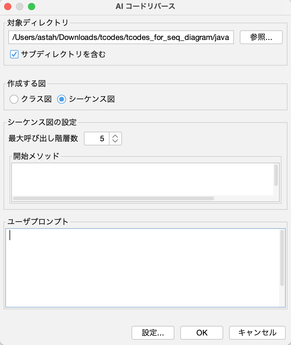 - [シーケンス図の設定] 、[ユーザープロンプト] をそれぞれ設定します。