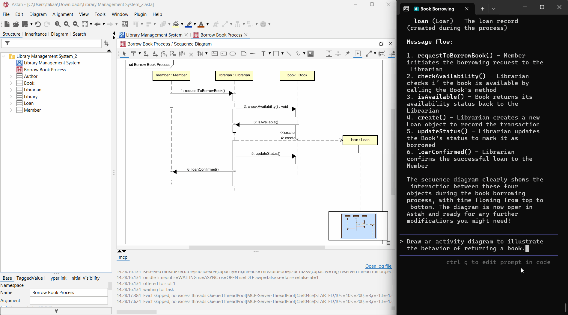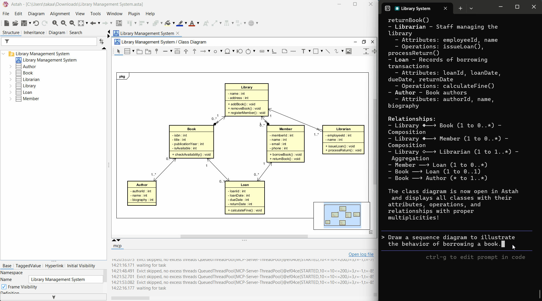 プロンプト:シンプルな図書管理システムを設計し、その構造を表すクラス図をastah*で作成してください。