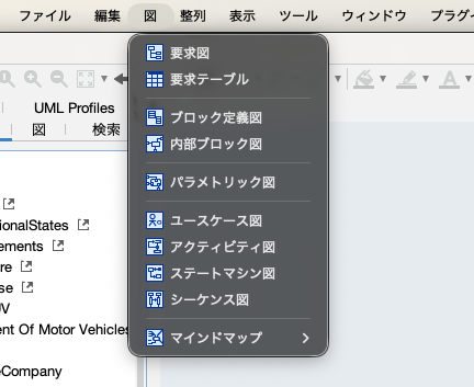 SysMLの図を作成するメニューに、セパレーターを追加しました